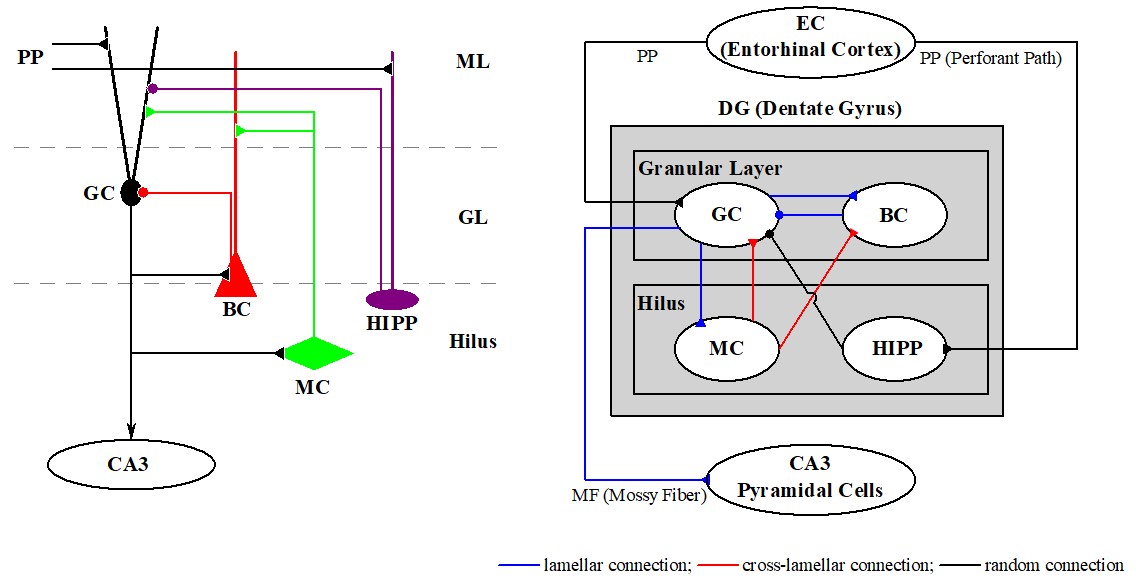 [3] S.-Y. Kim and W. Lim, "Disynaptic effect of hilar cells on pattern separation in a spiking neural network of hippocampal dentate gyrus," Cognitive Neurodynamics 16, 1427-1447 (2022).